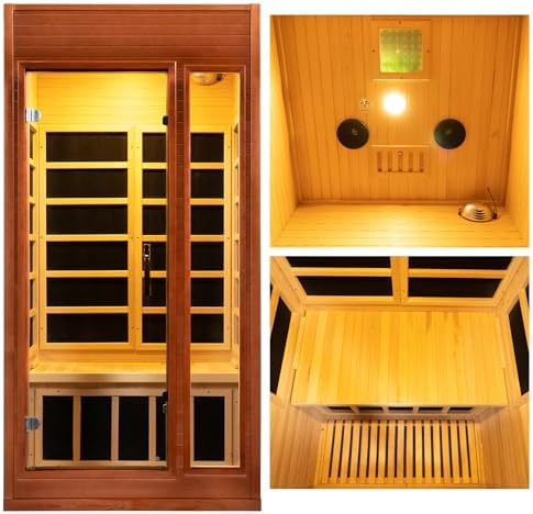 ZONEMEL Infrared Home Sauna 1-2 Person Red Cedar Wood Sauna Room, Indoor Dry Heat Sauna with Carbon Crystal Heating Panels, LED Control Panel, 39.4" L x 35.4" W x 78" H