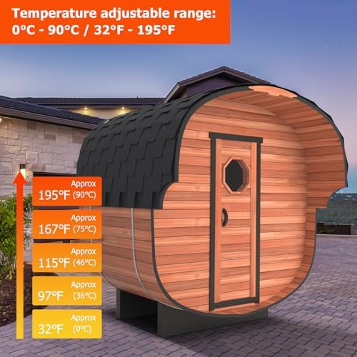 Outdoor Barrel Steam Sauna for 2 Person, Canadian Hemlock Wood, 4.5KW Harvia Heater, 8mm Tempered Glass, Sauna Stone, Water Bucket, Ladle, Lights, 220V, 195°F,WiFi control