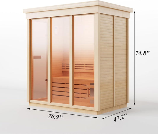 ZONEMEL Hybrid Wooden Sauna for 2-3 Person, Far Infrared & Steam Dual-System, 2100W 220V, 3.5KW Heater, 6 Heating Elements and Sauna Stove, 8mm Tempered Glass, Oxygen Bar, 7-Color Lights
