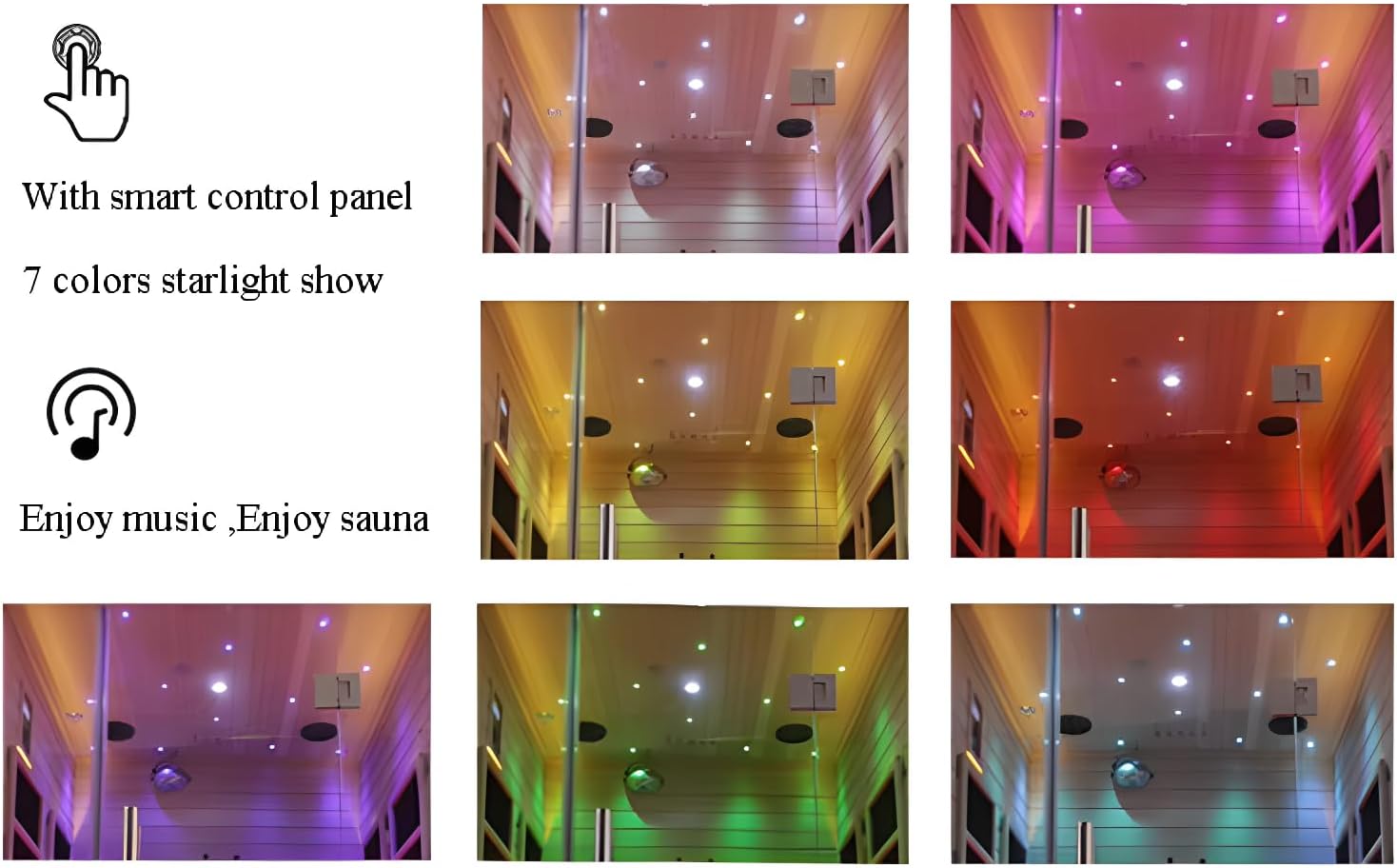 - Features: The sauna comes with full view tempered glass that allow you to see outside the sauna while being durable enough to withstand high temperatures. Optimized airflow is ensured through ventilation vents. The built-in oxygen ionizer ensures fresh, purified air, customizable 7-color LED mood lighting for soothing relaxation and mood enhancement