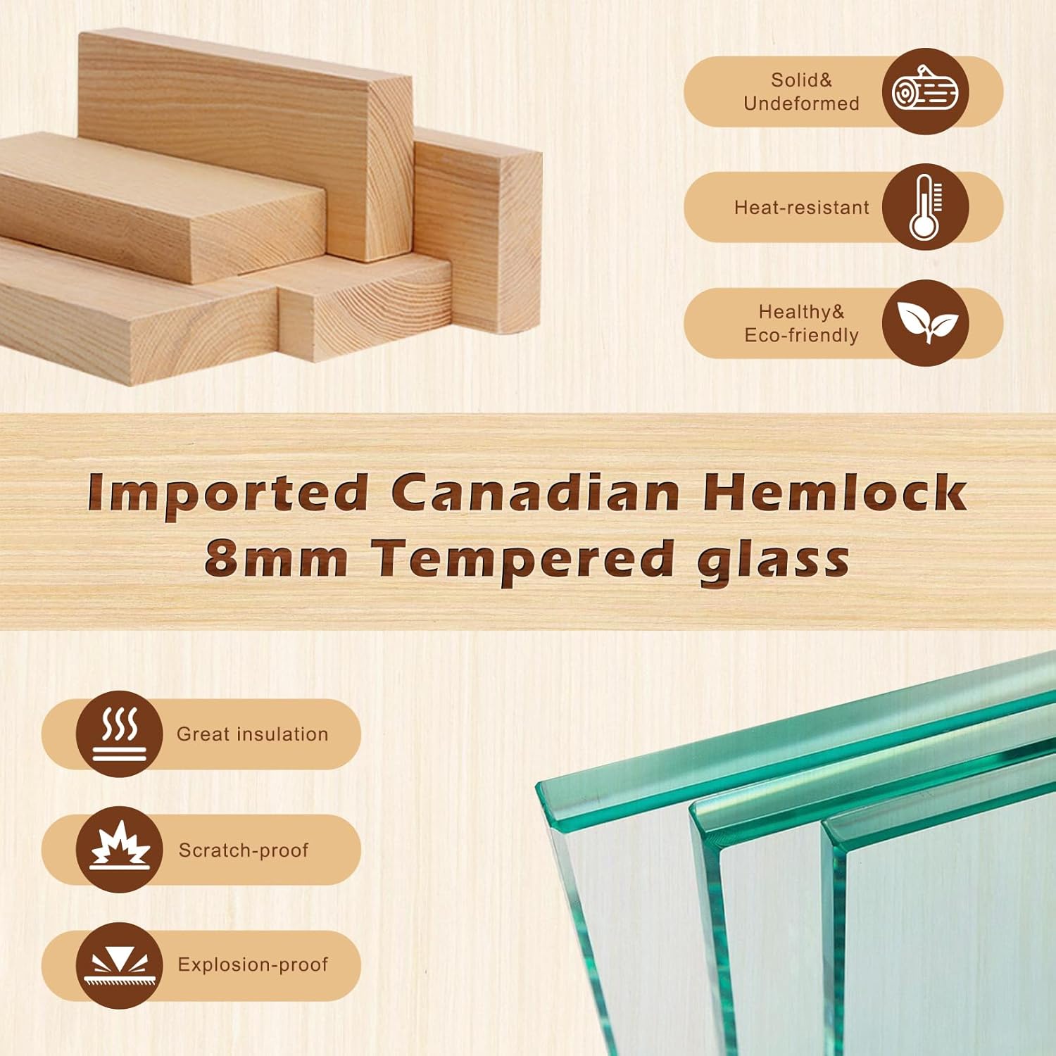 Premium Canadian hemlock — beautiful, durable, and an excellent heat insulator.