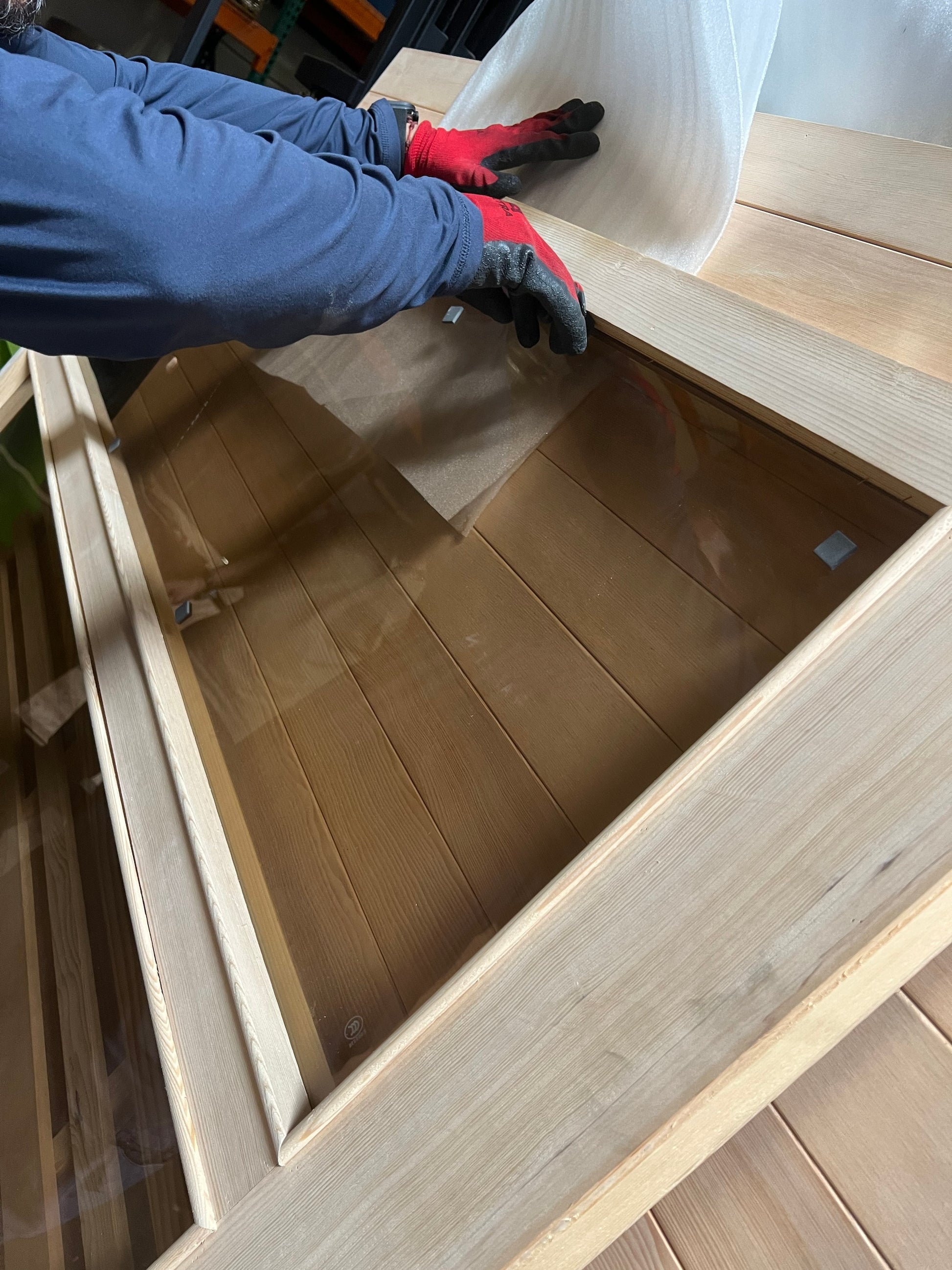 This unit is a special discounted left‑door model with minor cracks and surface scratches on the wood and/or glass frame. These defects are cosmetic only and do not affect structural integrity or performance. Full manufacturer warranty is still included — any functional issues during normal use will be repaired or replaced.
